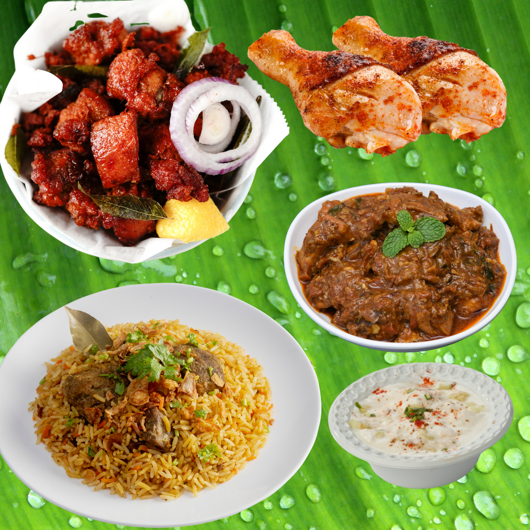 Savor a delicious homemade South Indian non-veg meal at Hillscape Grand, featuring spicy chicken chettinad and flavorful fish curry, made with fresh ingredients and authentic spices for an unforgettable experience!
